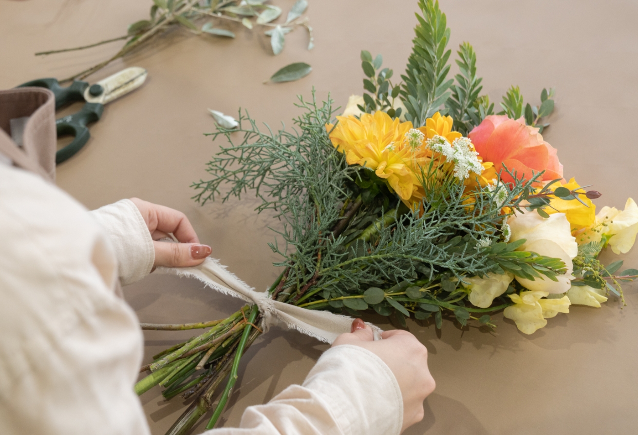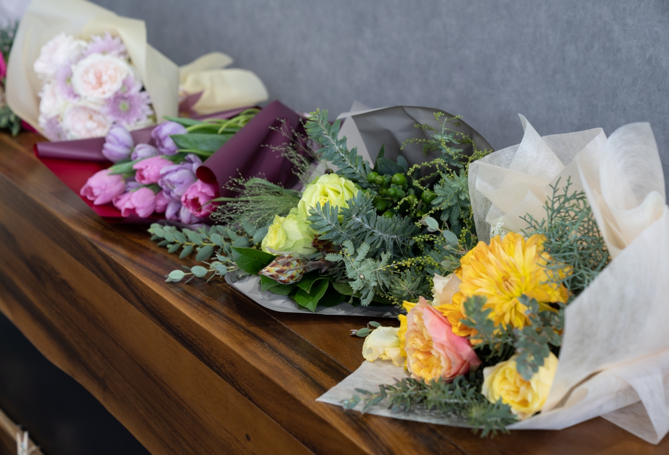 花束のご注文、アレンジメント教室の運営など、冠婚葬祭に限らず日常に寄り添ったお花の業務も様々です。